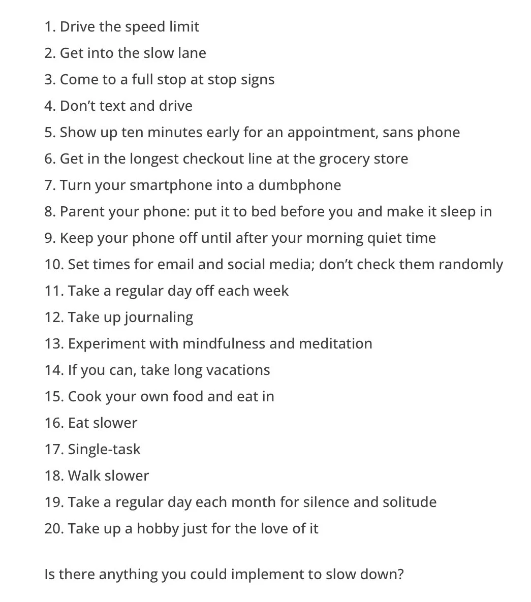 As Comer lists these 20 practices, he speaks with grace and allowance. This is his list - it does not have to be my list. While some of them are existential - if texting while driving is a common practice for you, perhaps you should question your life. Comer tells us to change the list any way that we like; make it our own. Just do something.